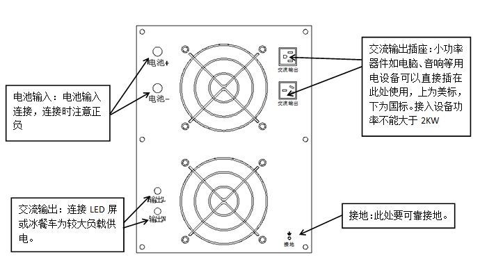 蓄電池欠壓保護(hù)、蓄電池過壓保護(hù)、輸出過載保護(hù)、 過熱保護(hù)、防雷保護(hù)